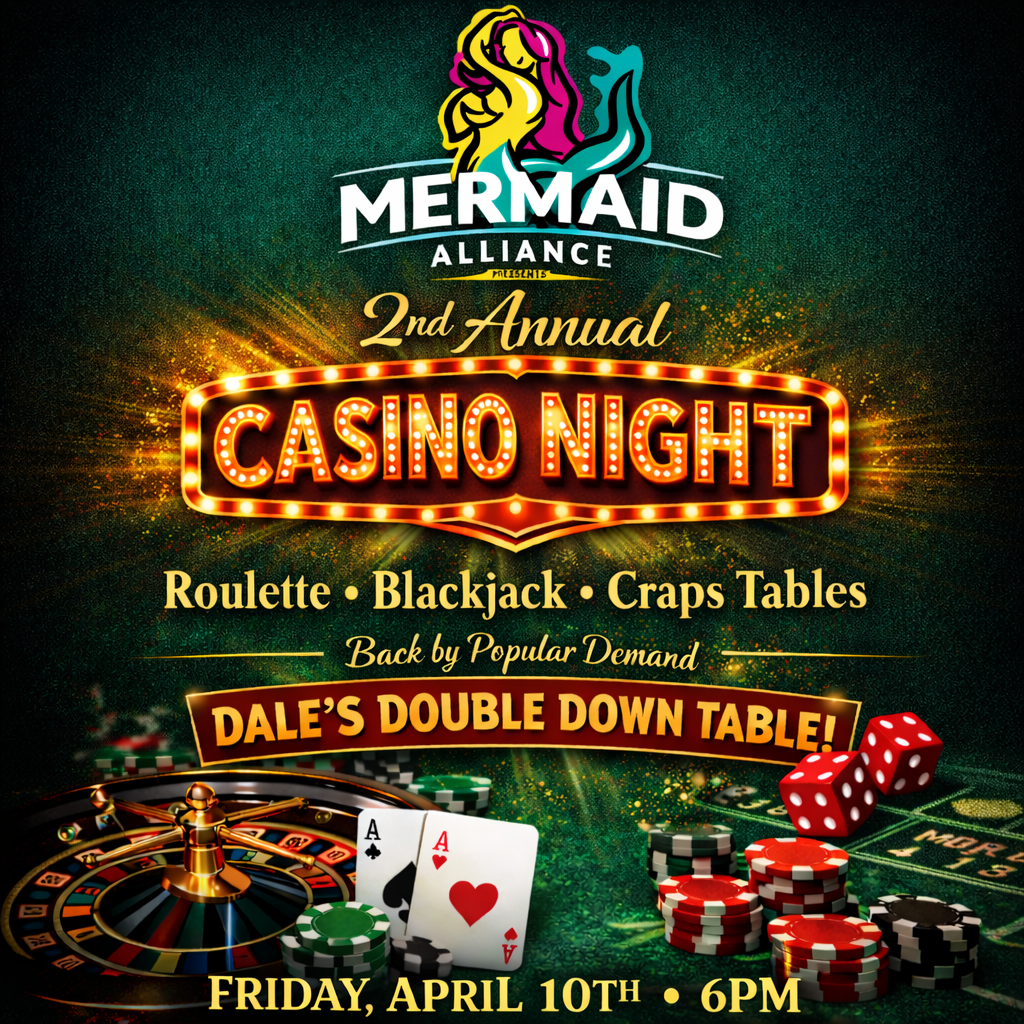 Join us for an unforgettable evening of fun and giving back at the Mermaid Alliance Casino Night Fundraiser on Friday, April 10, from 6:00 PM to 10:00 PM at the American Legion in Windsor, Colorado. Guests will enjoy classic casino games including Blackjack, Craps, Roulette, and the crowd-favorite Dale’s Double Down Table, along with prizes, food, drinks, and a lively community atmosphere—no experience necessary. This special event supports Mermaid Alliance, a local nonprofit dedicated to helping individuals and families affected by suicide loss through counseling support, emergency financial assistance, and community resources. Tickets are available for individual admission, couples, and sponsorship tables, with sponsorship opportunities offering recognition, logo placement, and promotional visibility. Space is limited, so reserve your spot today and be part of a meaningful night where fun meets purpose—together, we are bringing hope and support to those who need it most. 💙
